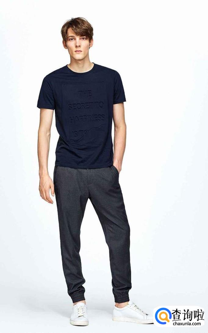 如果想要穿得休闲一点话,黑色T恤也可以搭配深灰色色裤子,这个比较适合年轻的小伙,或者学生穿。