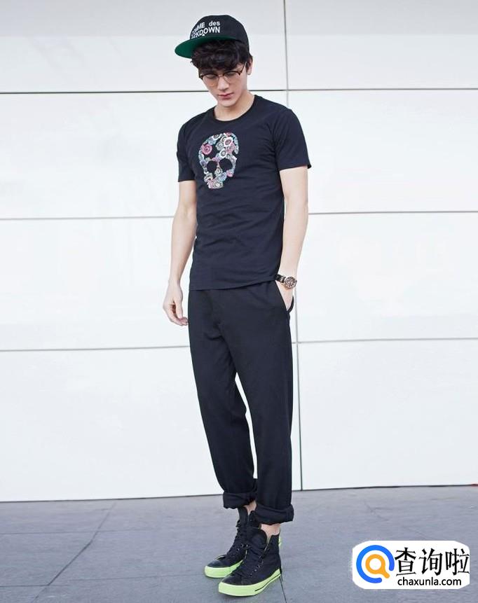 如果是比较酷的男生,或者是比较成熟点的男士,黑色T恤可以搭配一条黑色的裤子,看上去会很有型的。