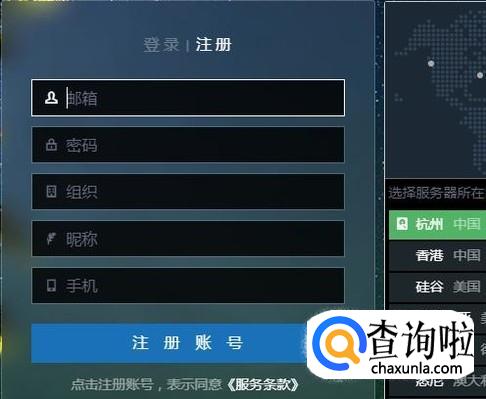 当我们进入到麦克官网的首页后,点击免费注册,根据提示填写相关的信息,右侧有一个选择服务器的选项默认是中国杭州,这个你不用管它,如下图所示: