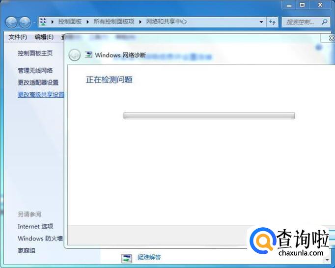 如果出现黄色感叹号的话,说明是网络没连接成功,点击【网络和共享中心】,如下图所示: