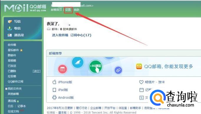 进入QQ邮箱首页,在页面左上角位置找到“设置”。