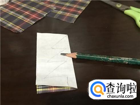 用笔画圣诞树的轮廓。先将纸张对折,然后画出圣诞树的另一半,如图所示,三种纸张都一样。