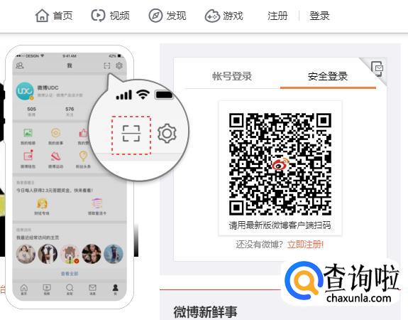 登录方法2:选择“安全登录”,通过新浪微博手机客户端扫码登录。