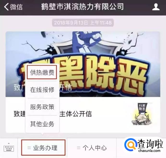 有的热力公司开通了微信公众号,你可以关注微信公众号进行咨询。这里以例如鹤壁市淇滨热力有限公司为例,关注公众号后,在菜单栏业务办理中选择供热缴费,绑定供暖卡页面点击更多绑卡方式,通过输入小区楼号和详细家庭住址进行卡号查询。