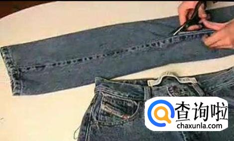 我们先用剪子把牛仔裤剪成大小长度一致的线条,最好都使用腿部的布料,因为腿部的布料比较好而且没有接头。