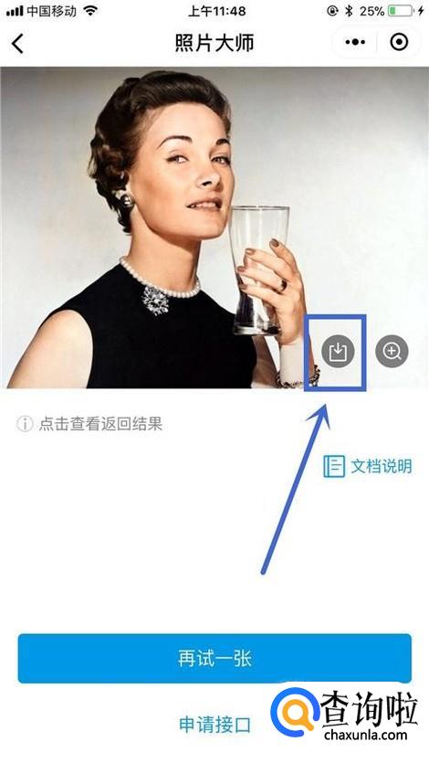 这样一张黑白照片就变成彩色照片了。如果你对这张照片非常满意,可以点击屏幕中的下载图标,把这张图片保存到系统相册当中。