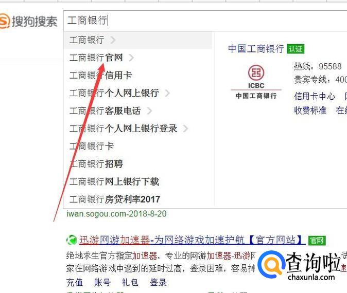 首先你要做的就是通过搜狗搜索工商银行的官方网站,然后点击进入,如下图