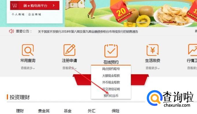 进入之后找到官方网站的在线预约的纪念币预约,然后点击进入,如下图。
