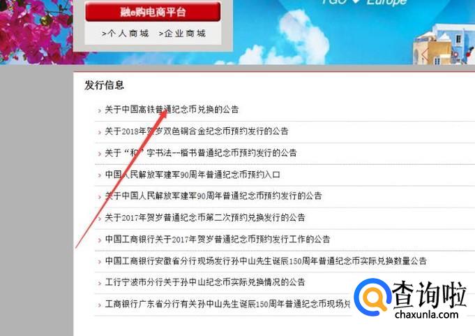 进入之后最上面的一个是关于高铁纪念币的公告,然后大家直接点击进入,如下图