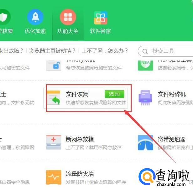 在软件功能页面中,点击下载并安装“文件恢复”功能选项。