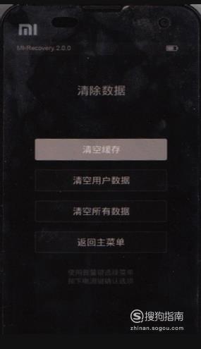 首先同时按住“音量键上”和“电源键”开机,手机会开机到Recovery模式。在这个模式我们无法使用触摸屏,所以要使用音量键上和下来移动选项,用电源键来确认操作。