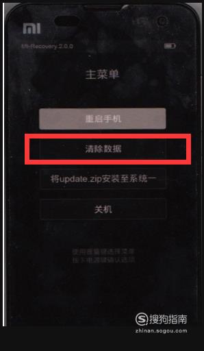 接着在“主菜单”中选择“消除数据”,按下“电源键”确定。