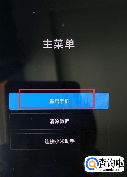 完成数据清除后,返回“主菜单”界面,选择“重启手机”,按“电源键”确定。