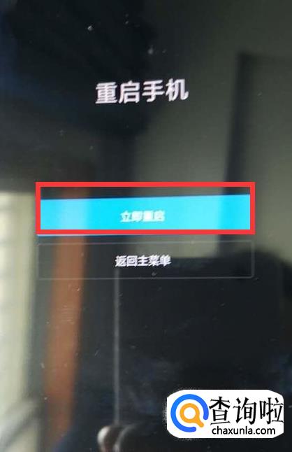 在打开的“重启”界面中选择“立刻重启”,并按“电源键”,手机就会自动重启。