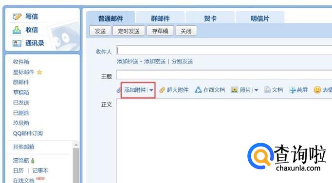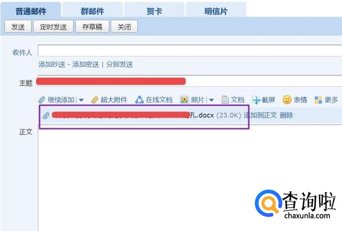 想要把文件发到邮件中的话,还是比较简单的,我们点击添加附件;