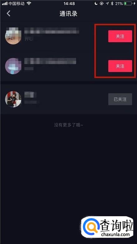 点击关注,可以查看到我们添加了哪些好友,如下图所示。