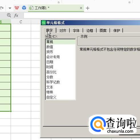 调出了设置单元格格式的对话框。再点击左侧第一项:数字