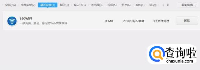 然后找到免费WiFi并点击右侧的卸载,如下图所示。