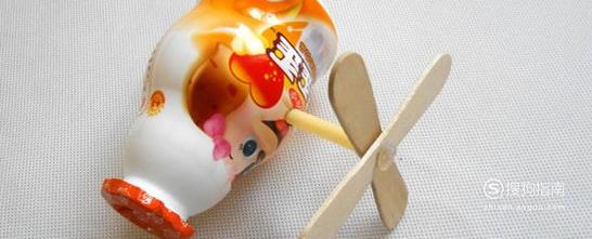 在酸奶瓶侧面戳孔,把吸管插进去,螺旋桨安装完成。