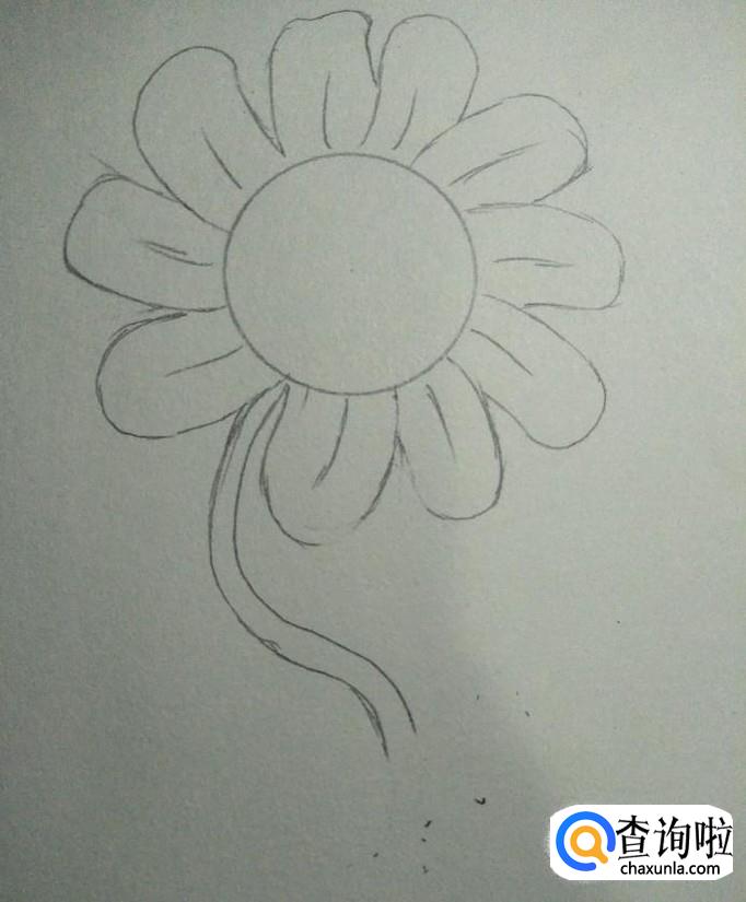 然后我们画出花杆,如下图,花杆可以"柔"一点,这样的向日葵更好看
