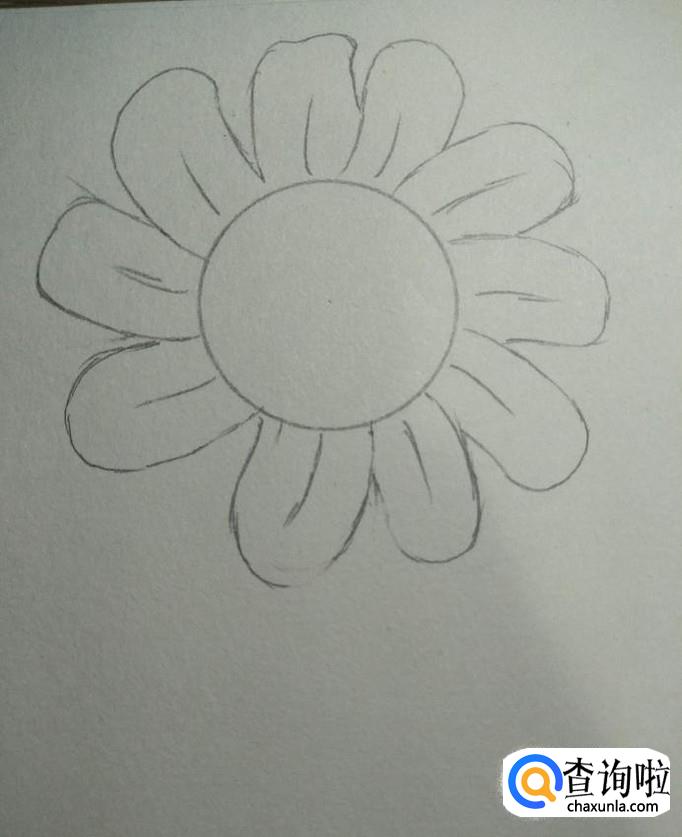 然后我们顺着圆周画其余的花瓣,如下图所示,使整个圆被花瓣包裹起来,看起来整体效果更好,