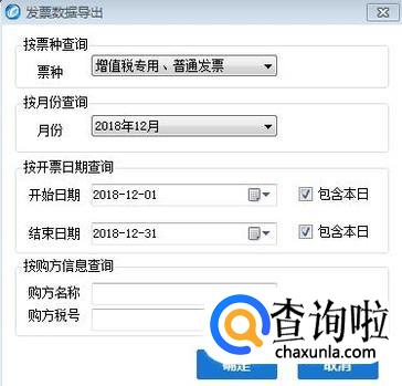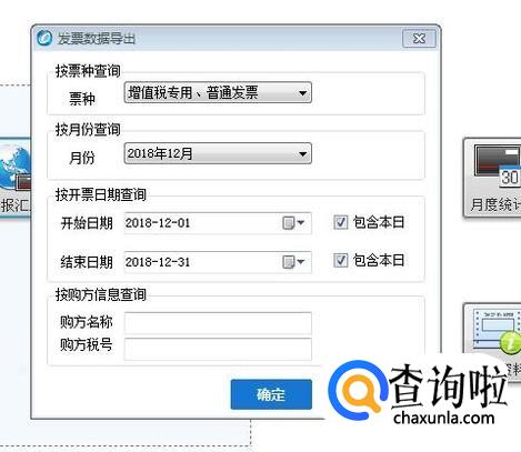 点击发票数据导出后,在出来的界面上,选择发票种类和要查询的日期,然后点击确定,发票数据就保存到电脑中了。