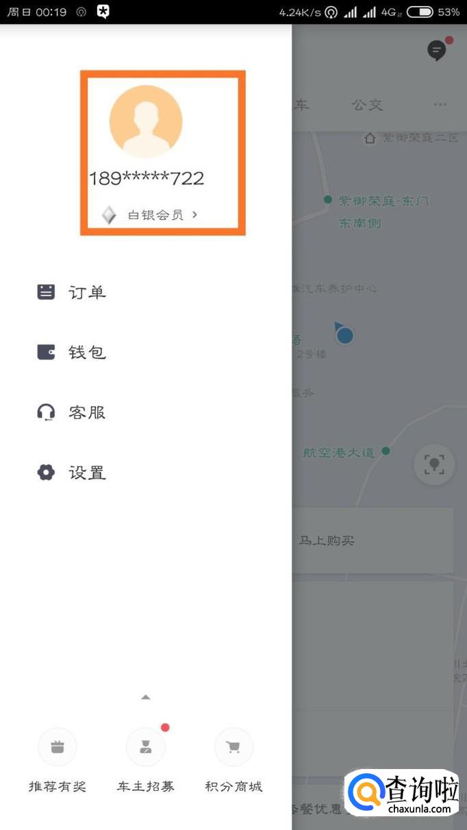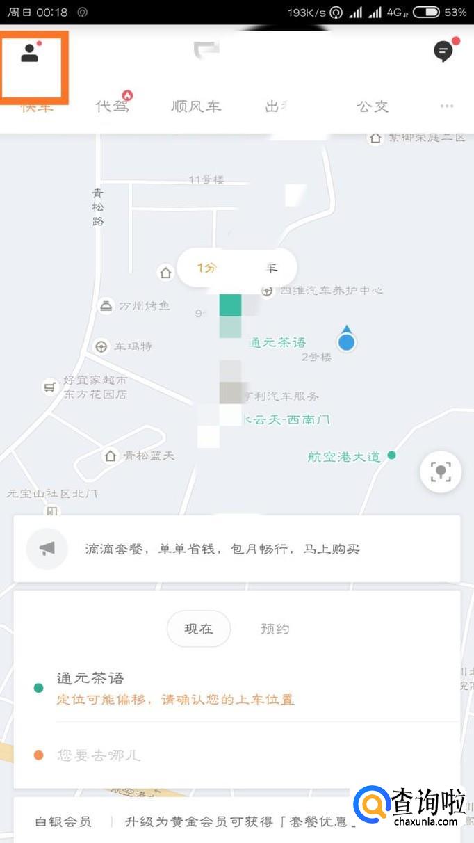打开滴滴打车,这个页面使用过滴滴打车的朋友应该都很熟悉吧,点击左上角的小头像。