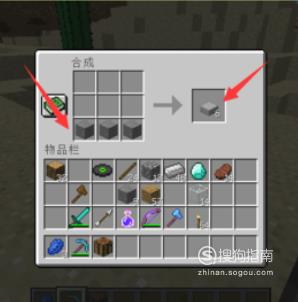 石头烧制完成后,将三个石头一排放在工作台中,三个石头可以合成出6个石台阶,如果需要很多石台阶,需要多放一些石头。