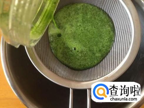 把搅拌好的菠菜汁用筛子把残渣过滤一下备用
