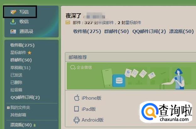 首先打开QQ邮箱并点击写信,如下图所示。