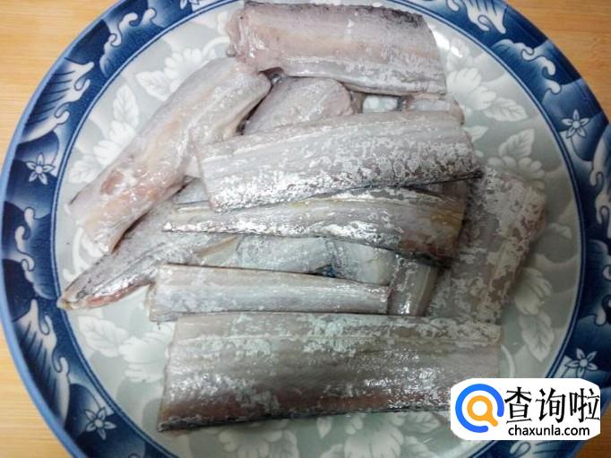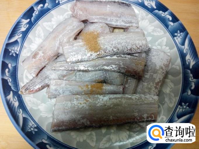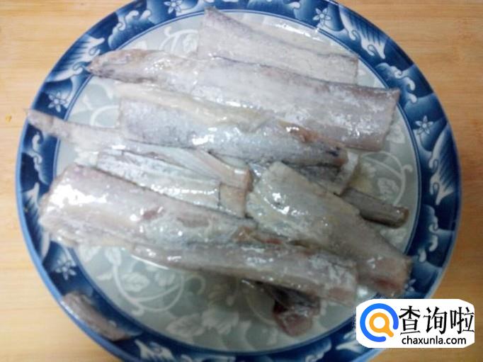 刀鱼收拾清洗干净,控干水分,切成段。放入少许盐,五香粉,料酒,腌制十五分钟。