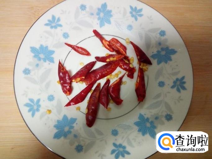 红干椒用水清洗干净,控干水分,斜刀切成段。切好葱,姜,蒜备用。