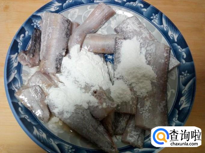 把腌制好的刀鱼,放入淀粉拌和均匀挂糊。