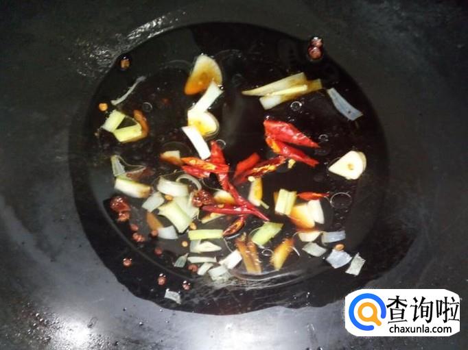 锅里重新放入油加热,油热后放入花椒,八角爆锅,放入葱,姜,蒜翻炒。