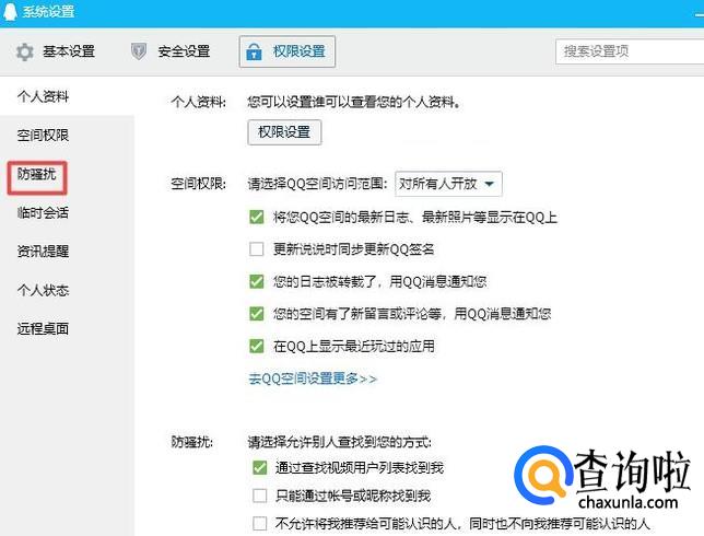 弹出的界面,我们点击防骚扰;