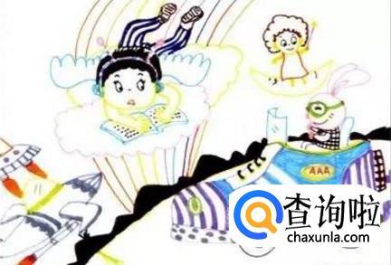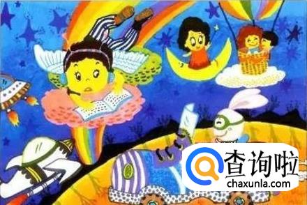 添加太空中的飞行物,为整幅画涂色并整理作品。如图所示。