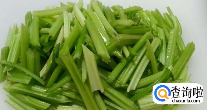 接着把芹菜多余的叶子去掉,洗净,再把芹菜切成段。