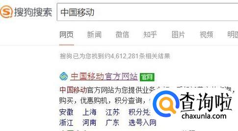 然后点击中国移动官方网站,如下图所示。