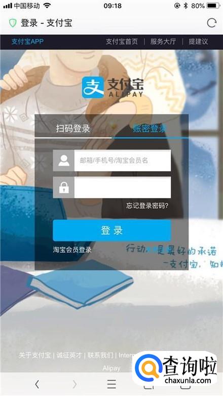 然后点击登录支付宝,如下图所示。
