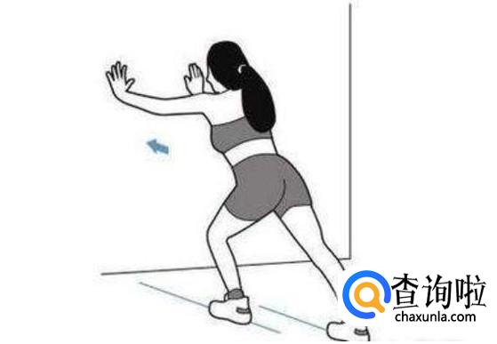 最简单的就是双手撑住墙面,然后一条腿后伸,脚跟着地,保持半分钟,然后换腿。