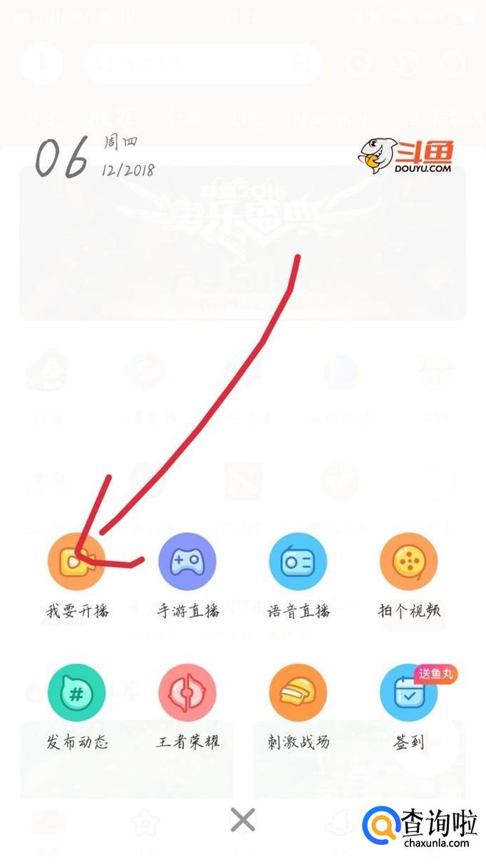 点击“我要开播”选项,如图1箭头所示。你会看到出现一个新的界面,如图2所示。