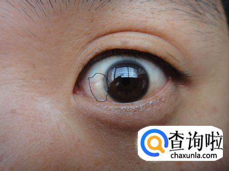 眼白区有三角、圆形或半月形的蓝色斑点。