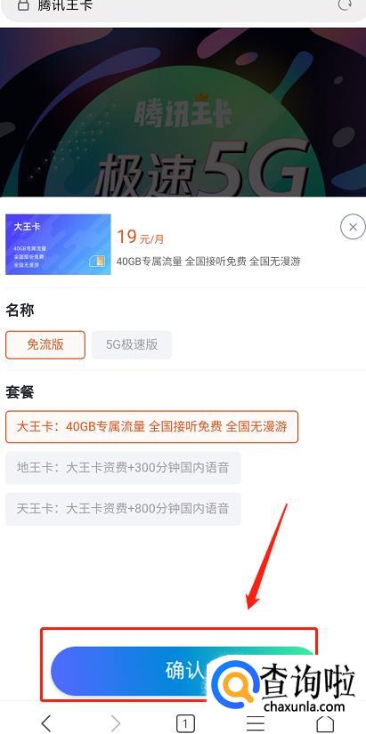 进入大王卡申请页面后,点击【立即申请】,之后选择想要的套餐类型,点击【确认】。