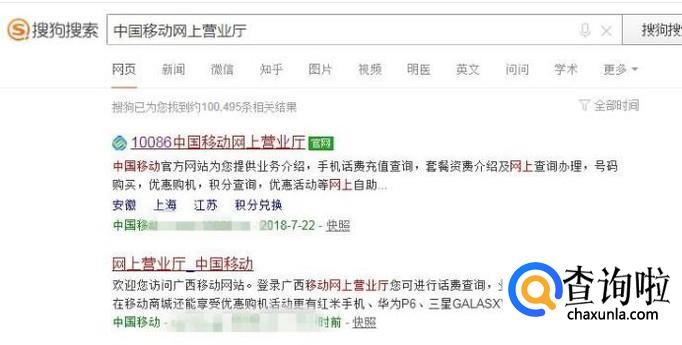 然后输入中国移动网上营业厅并点击回车键,如下图所示。