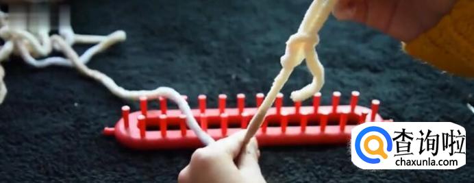 将准备好的毛线打一个结,套在神器上。