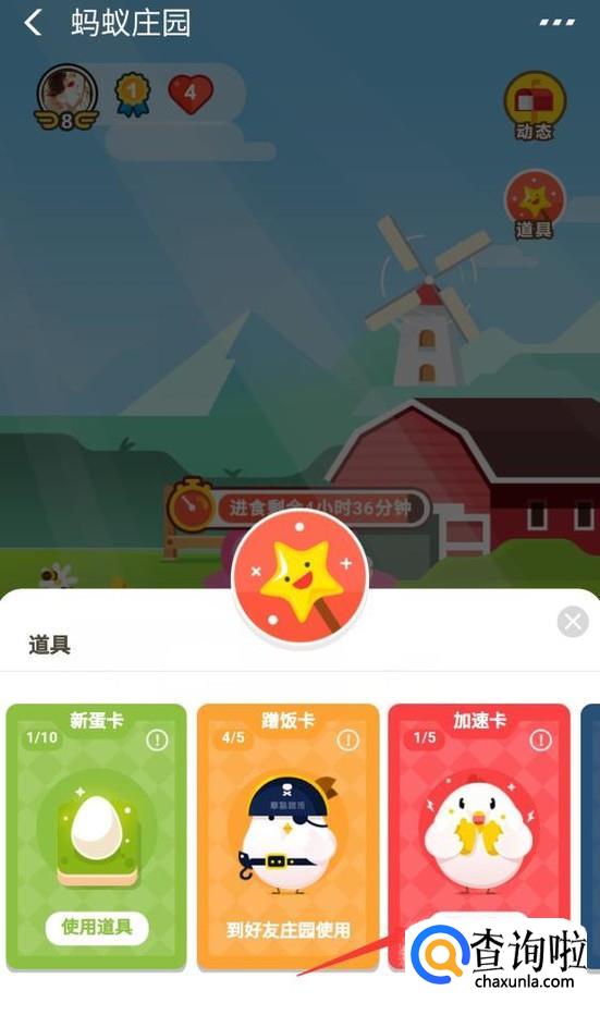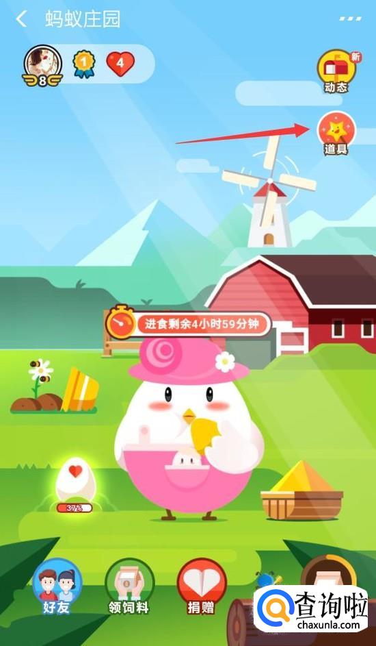 接下来就会进入到蚂蚁庄园主面板,此时我们单击右侧的“道具”按钮。
