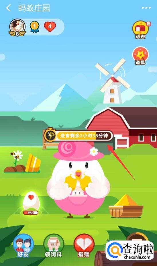 对话框消失之后我们会发现进食的时间已经缩短了一个小时,而且小鸡吃的速度非常快。