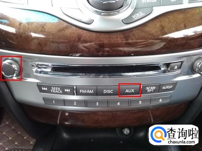 首先来看一下需要用到的按钮,左边的圆形按钮是多媒体开关,“AUX”是切换多媒体源的按钮,当然先要打开多媒体;