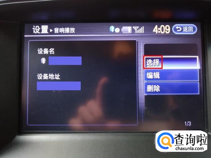 这里选择“选择”,确认,点击“BACK”按钮,名字对应的前面的蓝牙标志就会亮起;