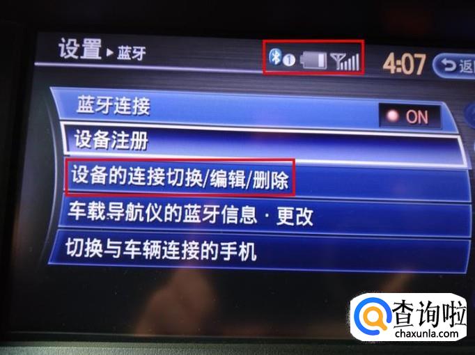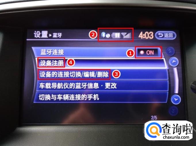 先打开蓝牙,将已连接的手机蓝牙关掉,如果连接的手机已经达到5台,需删掉一台设备,然后就可以“设备注册”添加新的手机了;